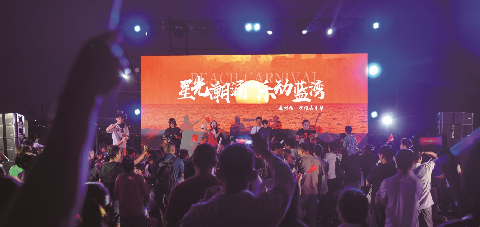 文旅融合,创新引领。“通州湾的一面”特色面食评选巧妙融合传统与时尚,十家面馆同台竞技,线上投票近2万人次,美食博主探店视频覆盖粉丝超80万,成功打造出一张飘香四溢的美食名片。国庆期间,“星光潮涌·乐动蓝向”嘉年华以“太空舱市集”“落日音乐会”和压轴烟花秀,为游客打造了一场沉浸式的滨海梦幻体验。更值得一提的是,“苏超”比赛期间,通州湾打造的两个第二现场创新融合消费体验与人才招聘、普法宣传,非遗漆扇制作、中秋拓印DIY等传统手工艺活动引人入胜,实现了文体旅的完美交融。
