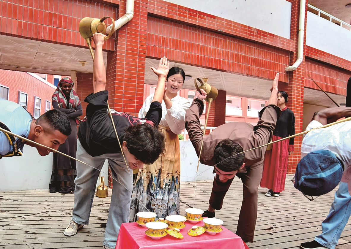 江苏航运职业技术学院里共建“一带一路”国家留学生感受中国传统文化的魅力 李毅成 摄